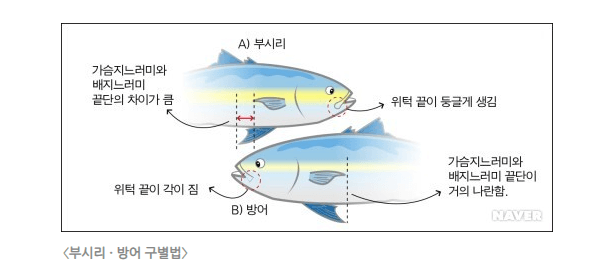 횟집 수조에서 방어와 부시리를 구분하는 가장 쉬운방법은