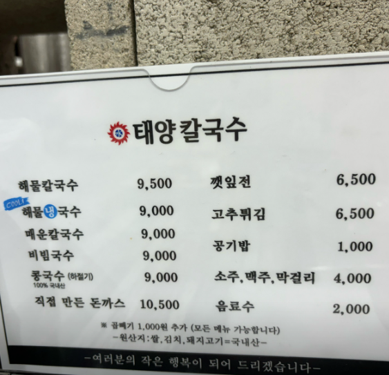 태양칼국수는 푸짐한 양과 신선한 재료로