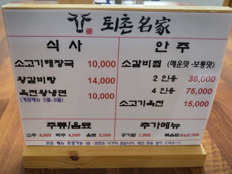 ◆ 상호 : 퇴촌명가