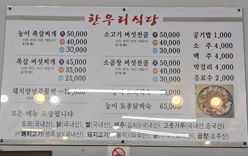 능이 족살찌개, 족살 버섯찌개 두종류이며