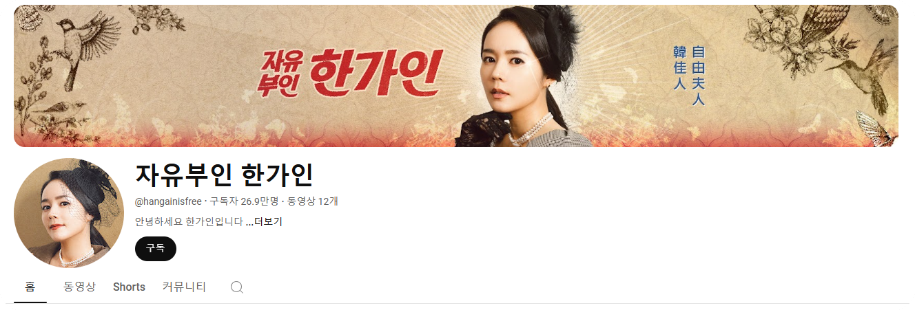 바로 대한민국 대표 미녀 한가인의 '자유부인 한가인' 채널입니다