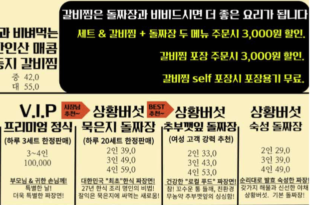 매운갈비찜과 통닭과 함께 즐기는 돌짜장