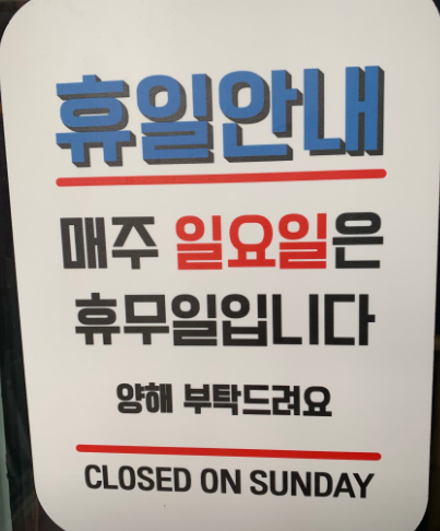 매주 일요일 정기 휴무