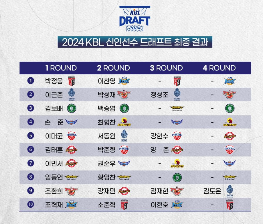 2024 kbl 신인 드래프트 결과 정리 - 역대최초 고졸 1,2순위